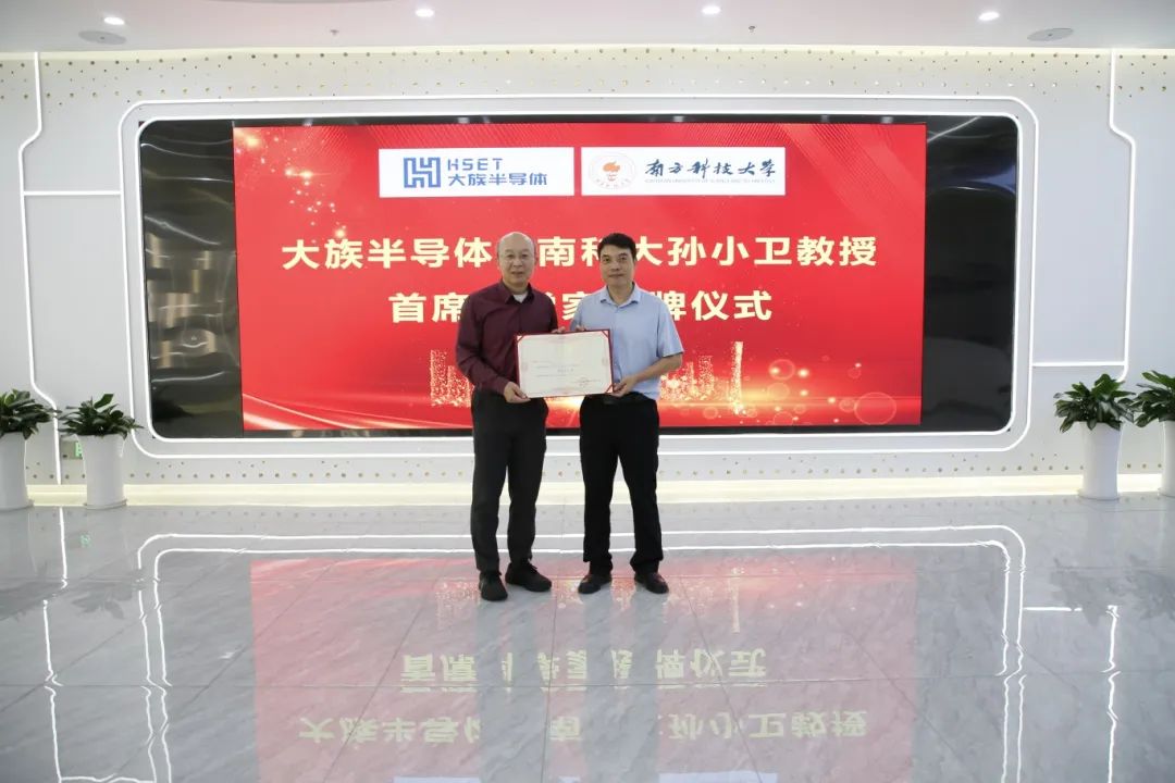 兩位合作方代表發言后,儀式正式進入到了隆重的授牌環節,南方科技大學授予大族半導體“研究生實踐基地”的牌匾,標志著雙方將在科研、教育等領域展開更為緊密的合作。與此同時,聘任大族半導體研發總監莊昌輝擔任南方科技大學電子與電氣工程系“產業教授”,莊總的加入將為學校的教學與科研帶來新的活力和實踐經驗。在儀式上,大族半導體榮幸聘請了南方科技大學電子與電氣工程系創系主任孫小衛教授擔任“大族半導體首席科學家”,孫小衛教授的加入將為大族半導體的技術研發和產業升級提供強有力的學術支持。