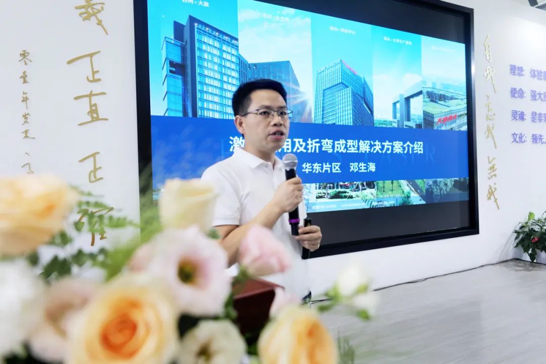 大族激光智能裝備集團通用平面切割產品線總經理蔡建平首先致辭,向參加此次會議的領導和來賓表示歡迎。蔡總表示,大族激光智能裝備集團作為激光及自動化普及應用行業標桿,此次匯聚華東地區行業專家、優秀企業家代表,共商共策,以賦能華東區域乃至全國的激光技術創新與智能制造升級,共同推動產業高質量發展。蔡總提到,大族激光智能裝備集團堅持每年投入銷售收入的10%以上在研發上,認真打磨產品、用心服務市場,探究新業務及新產品,助力客戶智造升級,提升競爭力。