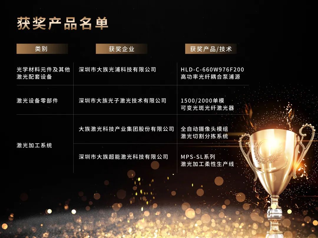 榮格技術創新獎評選已覆蓋智能制造行業上下游,今年國產光學材料元件、激光設備零部件和激光加工系統的質量、技術和服務在國際化競爭中得到大幅度提升。在本次榮格激光創新獎參評產品涉及的類別中,大族激光跟隨產品和技術多層次、快速迭代的發展趨勢,解開創新的“枷鎖”,不斷進行技術革新、產品更迭等,獲得了行業認可,三大類別均有獲獎代表項。